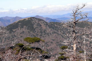 木屋平の谷の右には高城山や高丸山がそびえている。