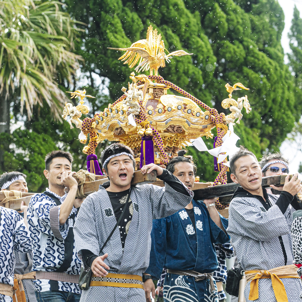 という威勢のいい掛け声とともに八丈太鼓が打ち鳴らされ、練り歩いていく面々。その顔ぶれは実に様々です。日焼けした漁師もいれば誘い合わせて参加した地元の高校生たち、さらには海外からの御一行まで。みな降りしきる雨の中、濡れるのも厭わず一心不乱に神輿を担いで目の前を通り過ぎます。