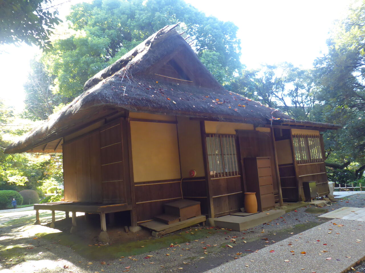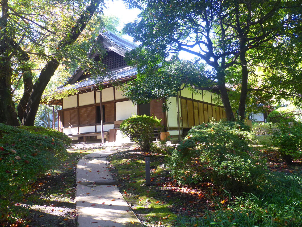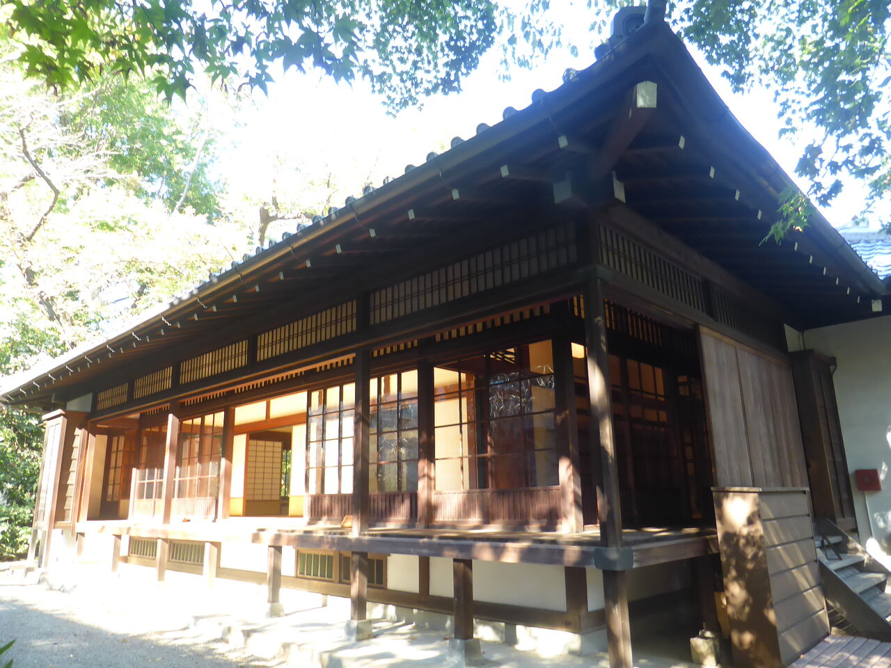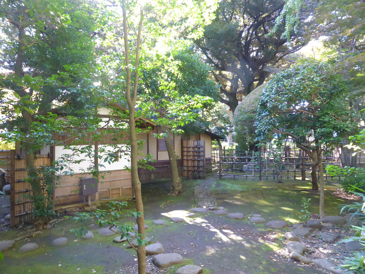慶安年間(1648~52)奈良・興福寺慈眼院(じげんいん)に建てられたもの。もとは興福寺大乗院内にあり現在奈良国立博物館に移された八窓庵、東大寺塔頭四聖房の隠岐録(おきろく)とともに大和の三茶室といわれました。第二次大戦中解体・疎開したものを昭和二十二年(1947)数寄屋の名工・木村清兵衛により現在の位置に再建。