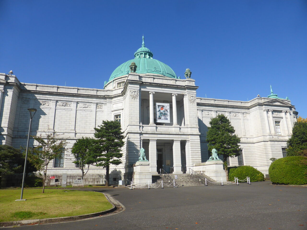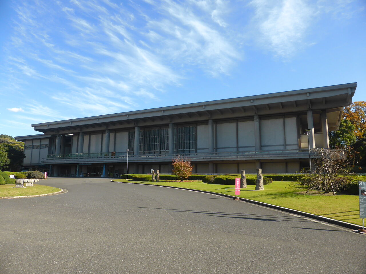 日本の美術・工芸・歴史資料を展示。J.コンドルが設計し、明治十五年(1882)に開館した旧本館は大正十二年(1923)に関東大震災で大きな被害を受けました。その後、昭和十三年(1938)に昭和天皇の即位を記念して開館したのが現在の本館です。渡辺仁(わたなべじん)による設計で、コンクリート建築に瓦屋根をのせ、東洋風を強く打ち出し、「帝冠様式」の代表的建築とされています。