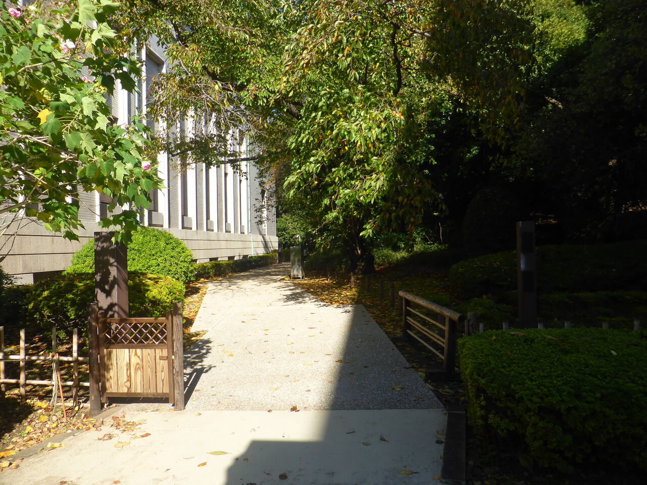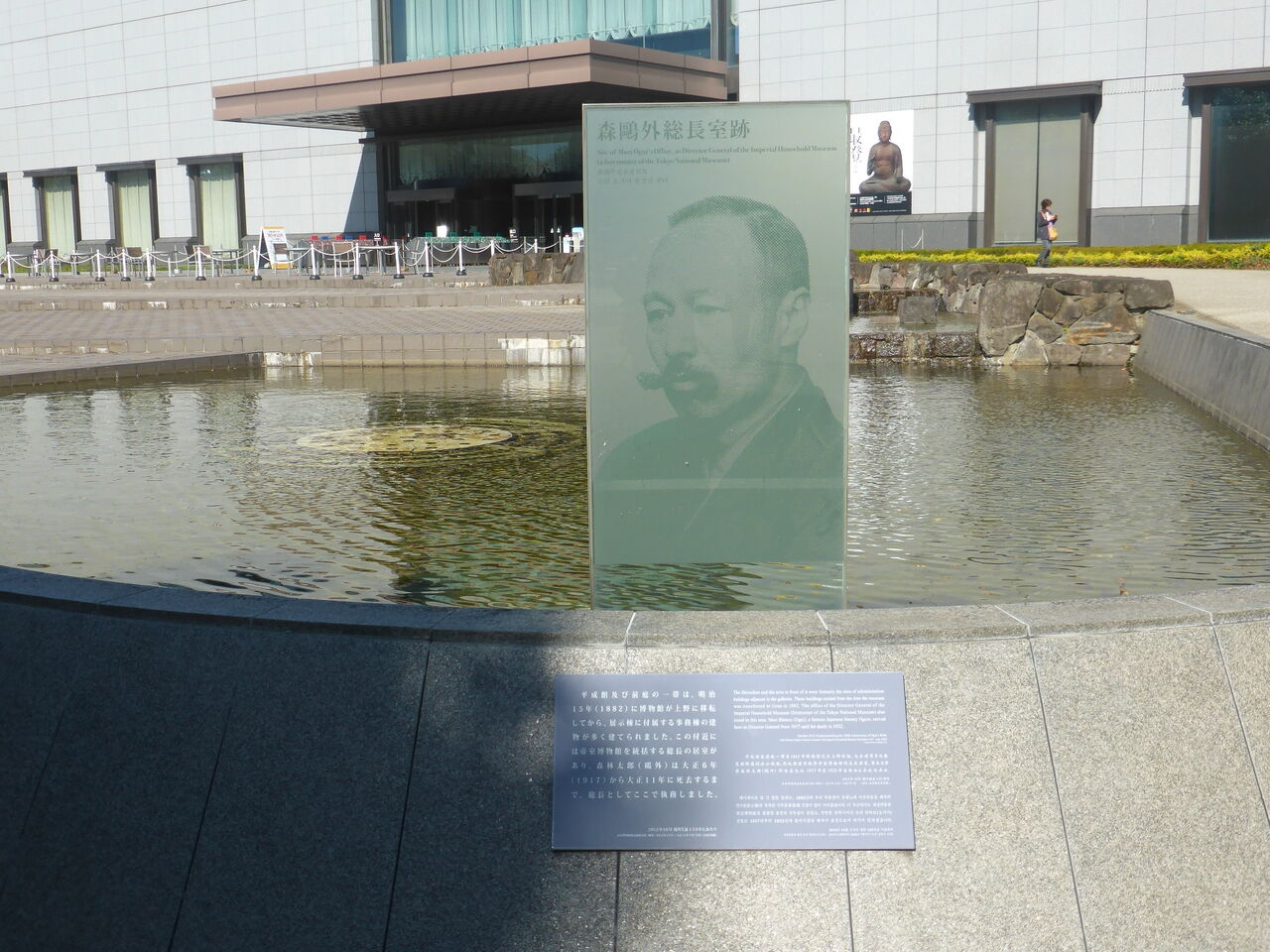 平成館及び前庭の一帯は、明治十五年(1882)に博物館が上野に移転してから、展示棟に付属する事務棟の建物が多く建てられました。この付近には帝室博物館を統括する総長の居室があり、森林太郎(りんたろう:ペンネーム 鴎外)は大正六年(1917)から大正十一年(1922)に死去するまで、総長としてここで執務しました。