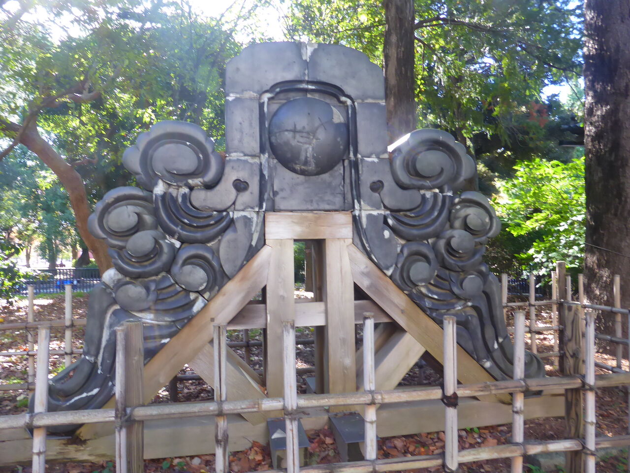 千代田区霞が関にあった筑前福岡藩黒田家の江戸屋敷の鬼瓦で、複雑な雲文の意匠が特徴。