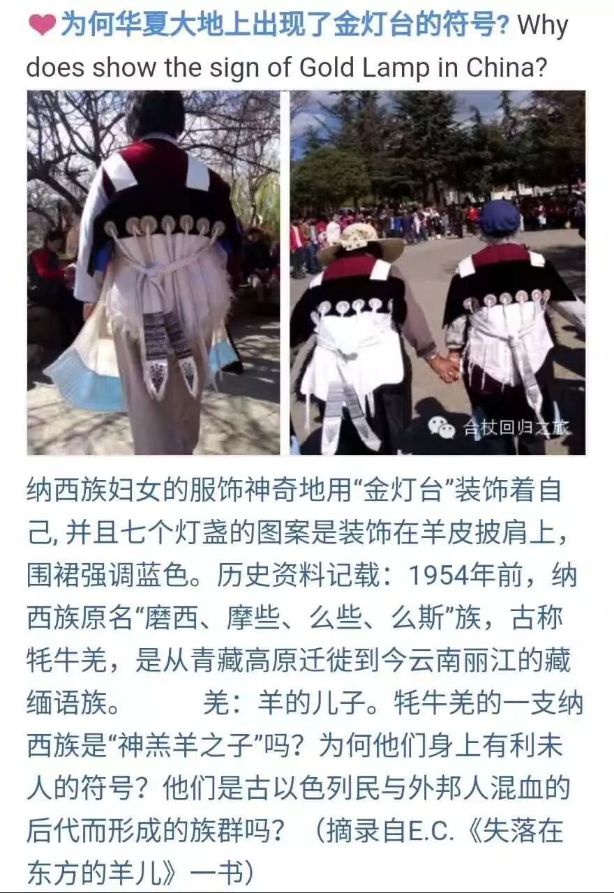 Esther Chenの『東方の失われた羊』という本には、羌はイスラエル北国の失われた支派の深い起源があり、中華文明全体の歴史過程に極めて重要な役割を果たしているという詳細な証拠があります。エホバ神はイスラエル人にこう告げただけで、祭壇はこのように四つの角を作るべきだ、なぜならそれは天の物の影であり、イスラエル人だけがエルサレム第一神殿の様式、契約の箱の造形、金の灯台(神を表す七霊)などを知っているが、これらはすべて四川羌族の文化に現れ、さらには影響を与えた中国全土です。