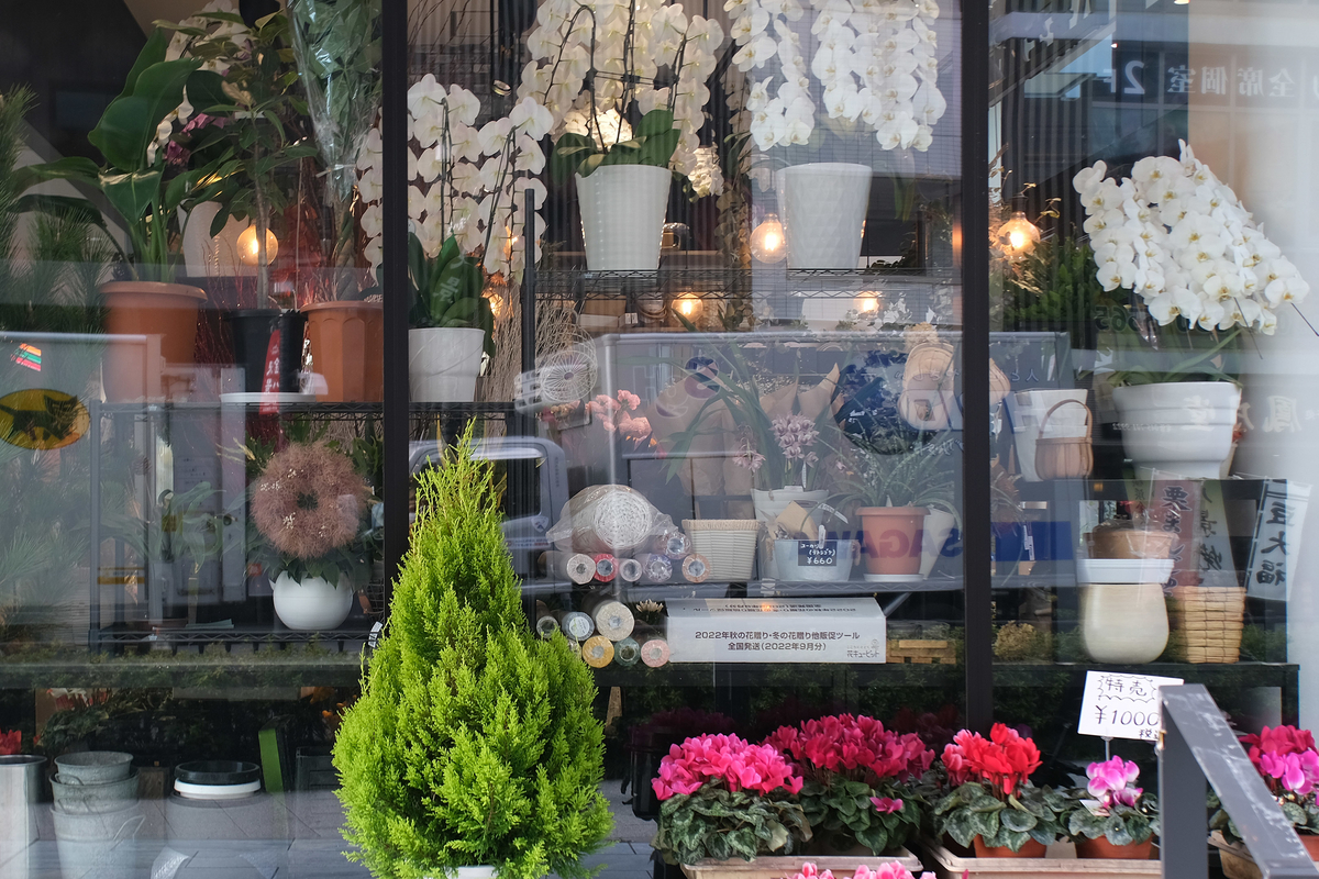 ぼっちちゃんがショーウィンドウに映った自分を見るのは花屋さんだ。(2022年12月25日、写真差し替え)