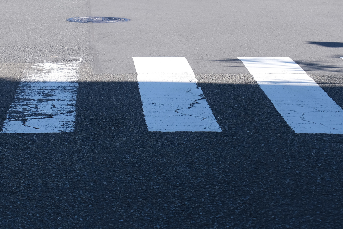 二人がわたる横断歩道、白線の剥げ具合まで再現されている(おそらくロケハンの時の方が現在より綺麗だった)。