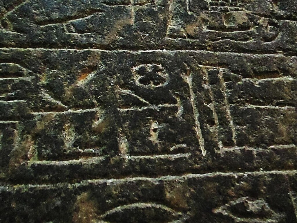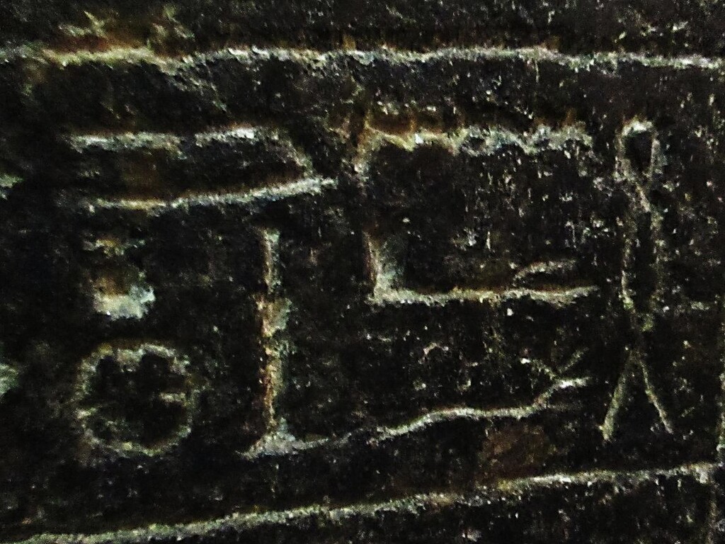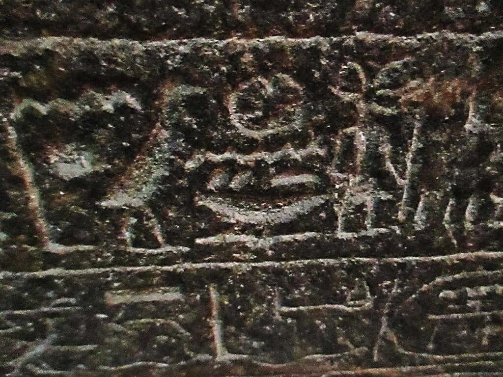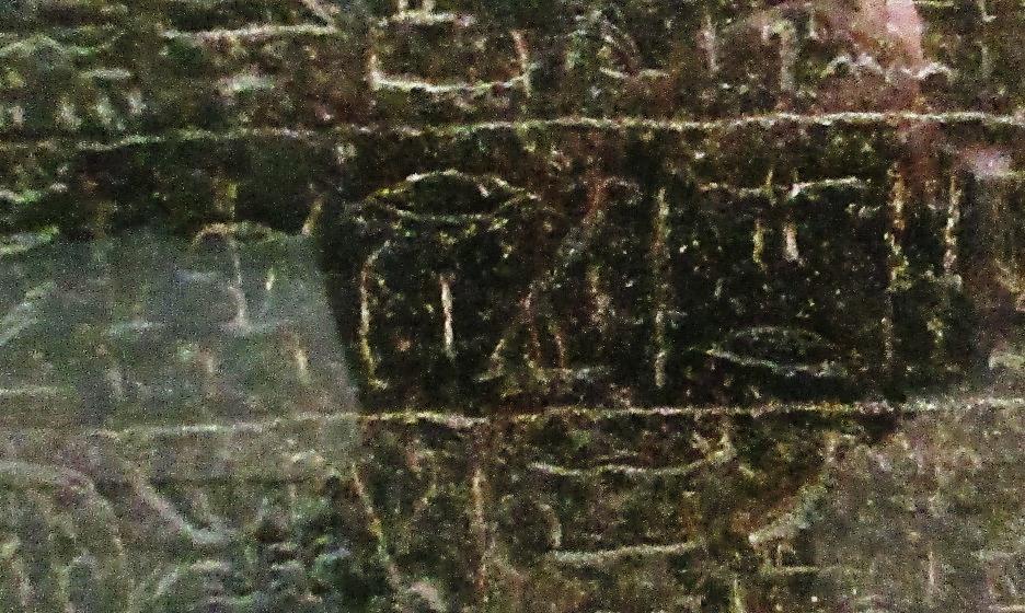 ガラスに覆われていたので、反射してしまい見づらいですが真ん中の行の文字がそうです。